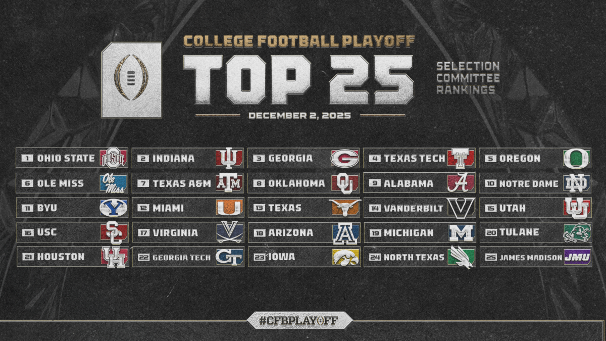 The College Football Playoff (CFP) is the event that crowns the national champion in college football. The CFP selection committee ranks the top 25 teams at the end of the regular season. The five highest ranked conference champions and the next seven highest-ranked teams will be seeded into a 12-team bracket based on the final ranking, with the four highest-ranked teams receiving a first-round bye. The teams ranked Nos. 5-12 will play in the CFP First Round, with the higher seeds hosting the lower seeds. The Playoff Quarterfinals and Playoff Semifinals rotate annually among six bowl games – the Goodyear Cotton Bowl Classic, Vrbo Fiesta Bowl, Capital One Orange Bowl, Chick-fil-A Peach Bowl, Rose Bowl Game presented by Prudential and the Allstate Sugar Bowl. The College Football Playoff National Championship will be on Monday, January 19, 2026, at Hard Rock Stadium in Miami Gardens, Florida. For additional information on the College Football Playoff, visit CollegeFootballPlayoff.com.